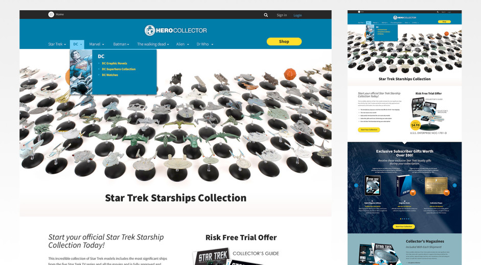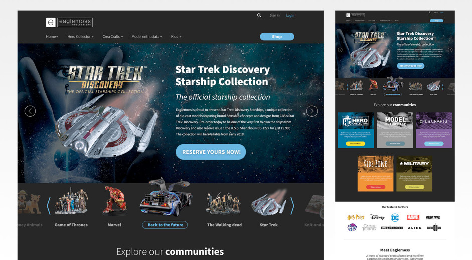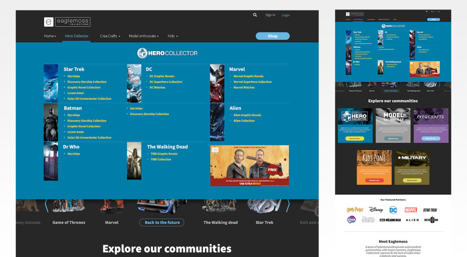 UI design for the new Eaglemoss CMS pages for Eaglemoss Collections.